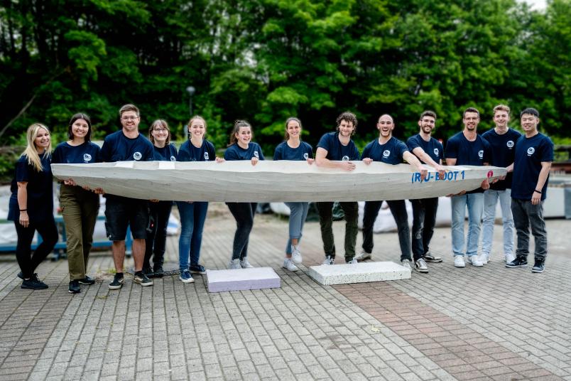 In einem Projektseminar der Fakultät für Bau- und Umweltingenieurwissenschaft haben Studierende zwei Kanus aus Beton entworfen. Dafür haben sie in verschiedenen Teams alle Aufgaben rund um das Design, die Modellierung, das Materialkonzept, die Betonmischung und den Kanubau übernommen.