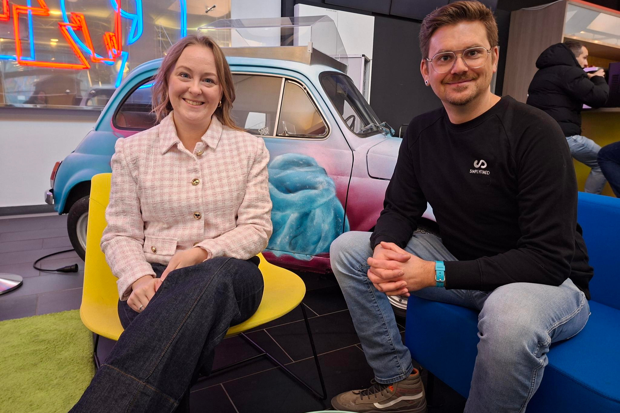 Ein eigenes Start-up auf die Beine stellen? Das Ruhr Innovation Lab unterstützt dabei! Gründungsberaterin Michelle Twardzik (links) berät an der Ruhr-Universität dazu; Wissenschaftler Thomas Seidensticker von der TU Dortmund hat seine Gründungsidee bereits erfolgreich umgesetzt.