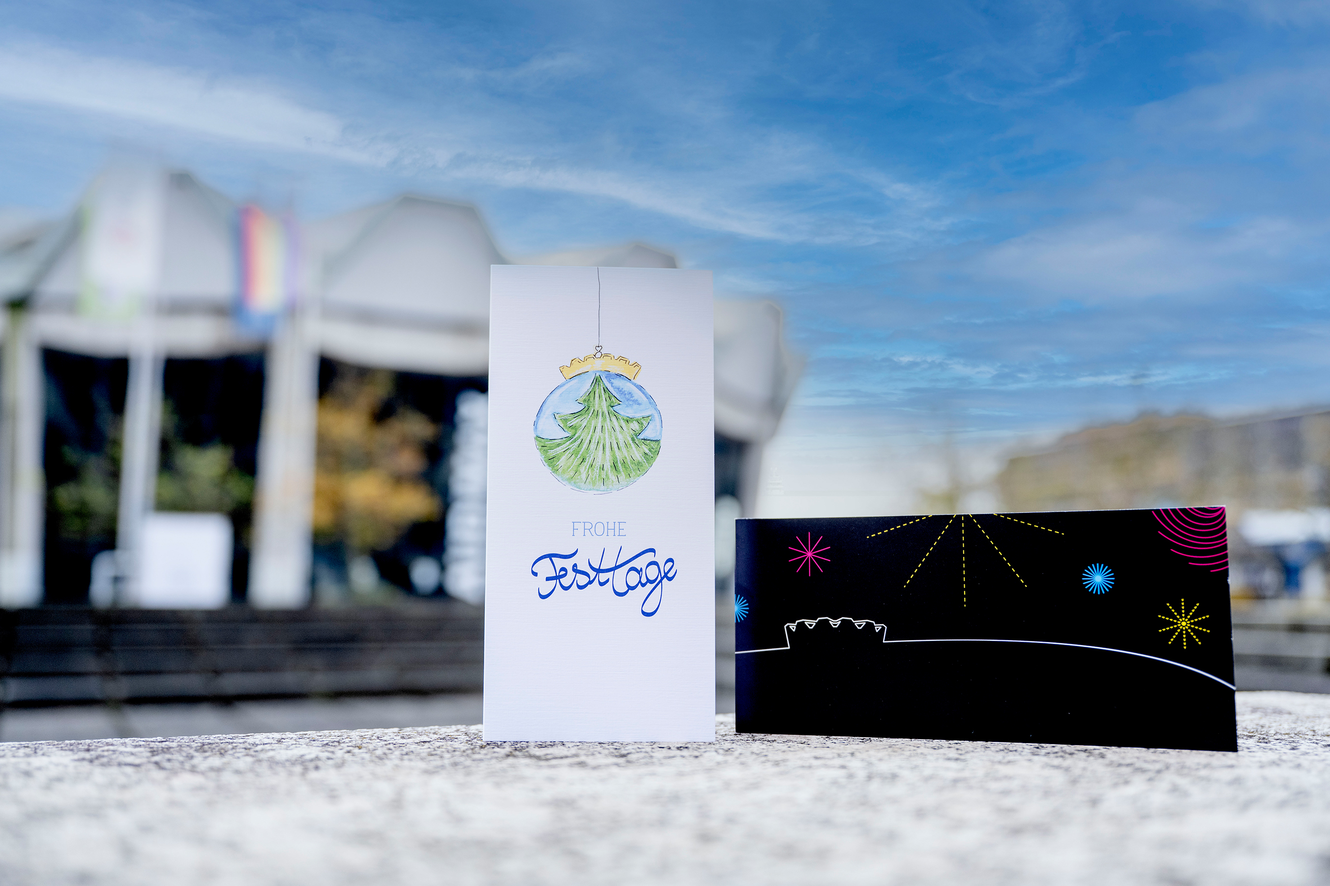 Verschiedene Grußkarten für die Festtage gibt es ab sofort exklusiv im Unishop im Hörsaalzentrum Ost (HZO), Ebene 01. Die Klappkarten DIN lang mit passendem Umschlag kosten jeweils 1,20 Euro. Die Karten können intern über einen Bestellschein bezogen werden.