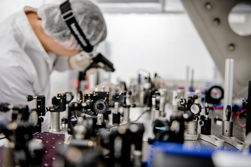 An meinem Lehrstuhl arbeiten wir zum Einen daran die Technologie von Femtosekundenlasern voranzutreiben. Unser Ziel ist es, neue ultraschnelle Lasersysteme mit höherer Durchschnittsleistung zu entwickeln, also intensive Pulse, die sehr häufig hintereinander auftreten. Dazu erforschen wir unter anderem neue Materialien zur Laserverstärkung oder Mechanismen zur Pulserzeugung.
