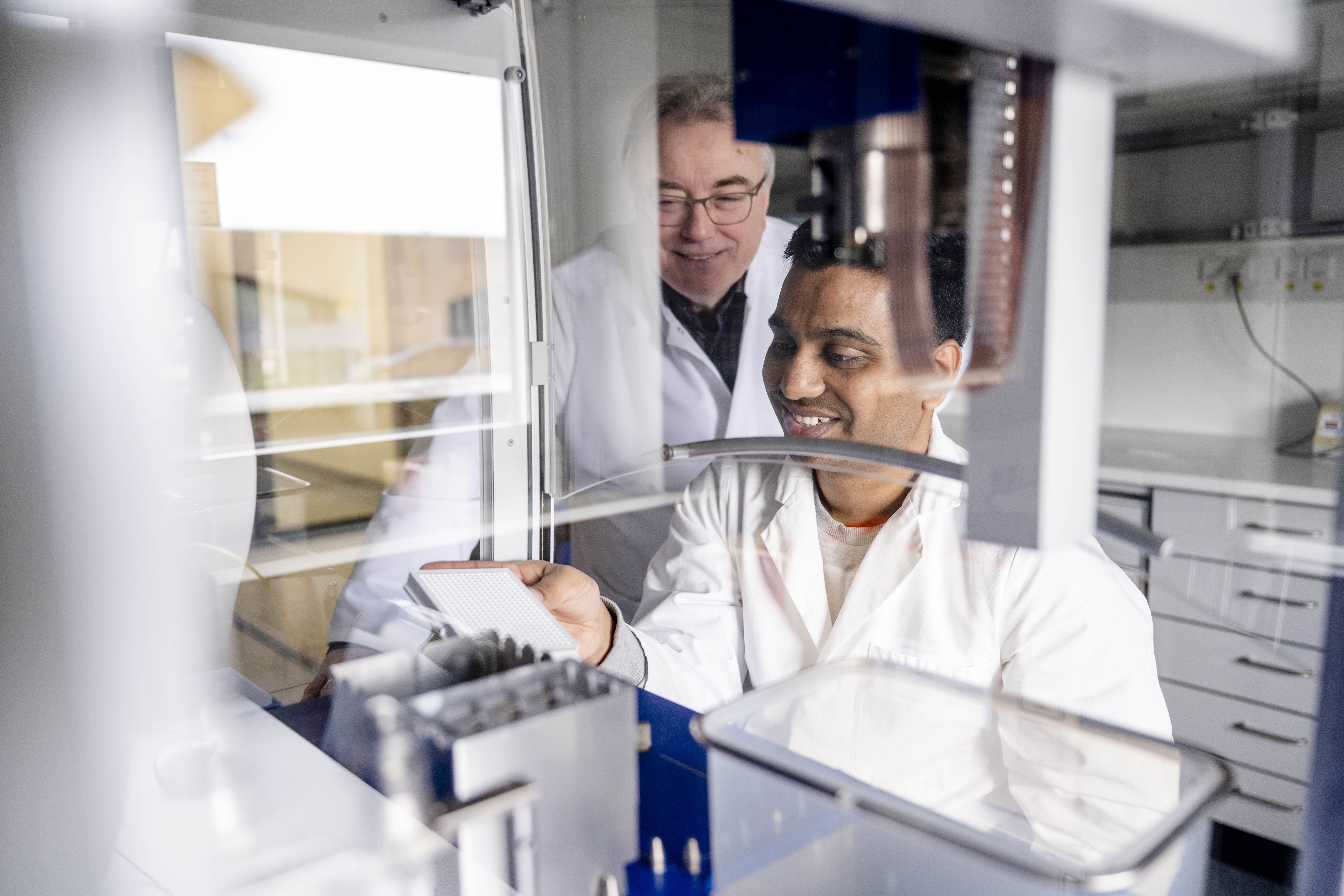 Ralf Erdmann (links) und Chethan Krishna widmen sich der Erforschung von Trypanosomen. Die Erreger lösen verschiedene, weltweit häufig auftretende Krankheiten aus.